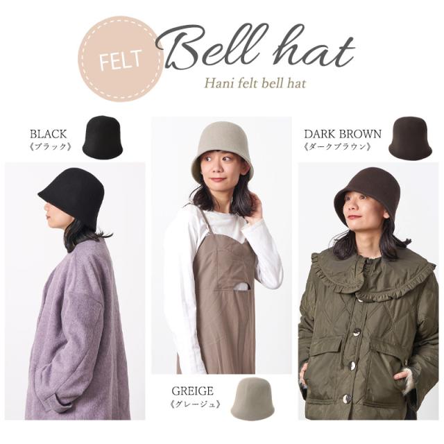 レディース 秋 冬 秋冬 秋用 冬用 帽子 つば広帽子 つば広ハット つば付き帽子 メトロハット チューリップハット バケツハット バケハ 日よけ帽子 日除け帽子 | Hani フェルト ベルハット ht-han