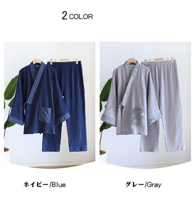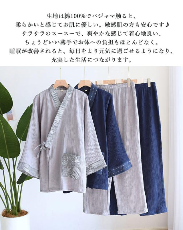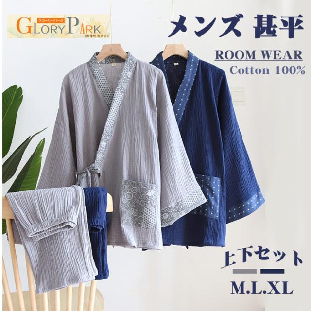 甚平 メンズ じんべい 浴衣 ゆかた 父の日 プレゼント長袖パジャマ 2層構造ガーゼ 綿 上下セット 皺感 寝巻き ナイトウェア 大人 ルームウェア 着物風 肌に優しいさらっとした柔らかいガーゼ dh280c0h5 dh280c0