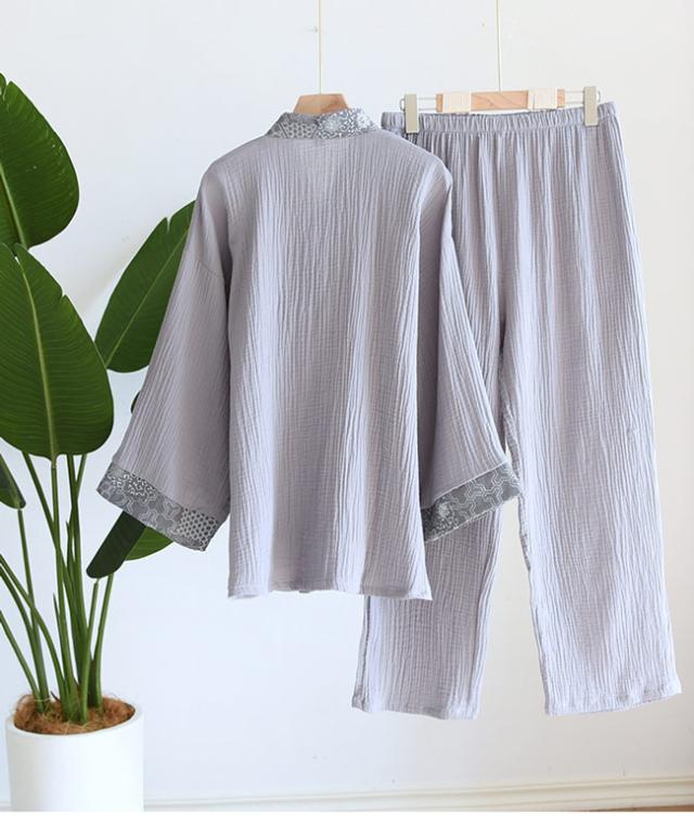 甚平 メンズ じんべい 浴衣 ゆかた 父の日 プレゼント長袖パジャマ 2層構造ガーゼ 綿 上下セット 皺感 寝巻き ナイトウェア 大人 ルームウェア 着物風 肌に優しいさらっとした柔らかいガーゼ