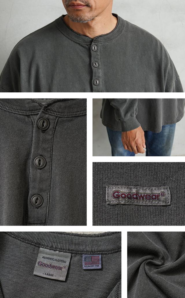 Goodwear グッドウェア 2W7-64205 USAコットン L/S ガーメントダイ ヘンリーネック Tシャツ SUPER BIG【T】|メンズファッション アメカジ ロンT 長袖Tシャツ ワークウェア アメリカ綿 無地 厚手 カジュアル