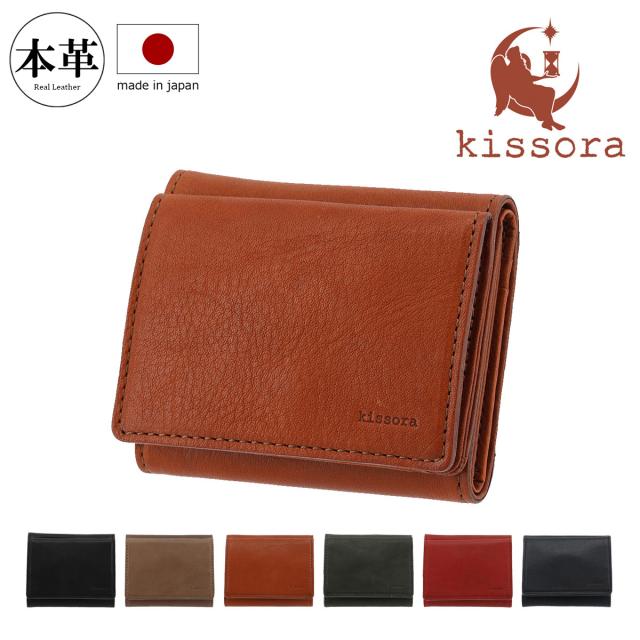 【レビュー投稿で+5%還元】キソラ 三つ折り財布 本革 ディニタ レディース メンズKIMS-020 kissora | ミニ財布 牛革 日本製 ロゴ レザー