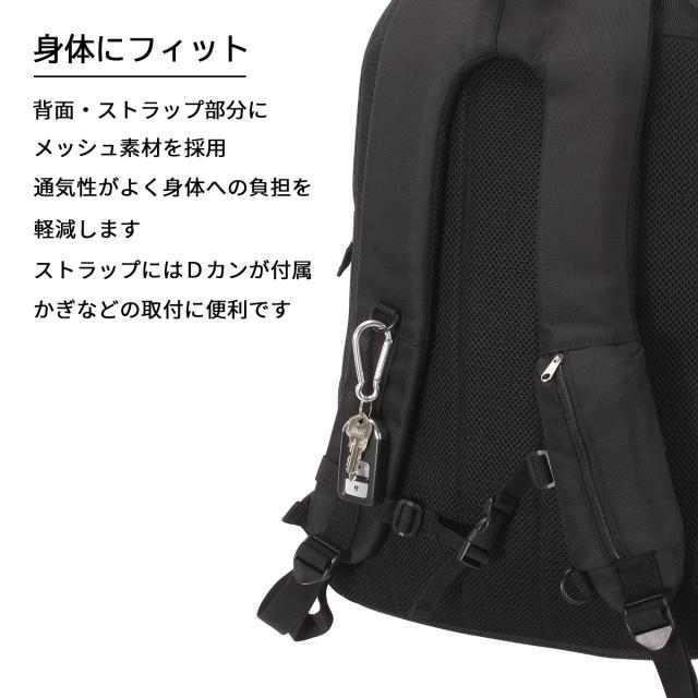 | 1泊の小旅行や部活などに便利な大容量リュック。 荷物量によってマチを調整できるエキスパンダブル機能付きのため、お出かけ先で荷物が増えてしまっても安心です。 正面ポケットにはオーガナイザーポケットが付属。ショルダー部分にはマチ付きポケットがついているため、リュックを背負いながら小物を収納することができます。 本体素材には撥水加工が施されているため、雨の日でも荷物が濡れる心配がいりません。 至る所に有難い機能が盛り沢山のおすすめリュックです。 |