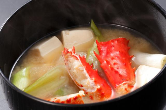 ※鉄砲汁 … 北海道の郷土料理で、カニの身や殻を味噌汁の具材として使用した汁物です。特に道東地方、根室地方でよく食べられており、漁師料理として親しまれています。名前の由来は、カニの脚を箸でつつく様子が鉄砲に弾を込める仕草に似ていることから来ているといわれています。