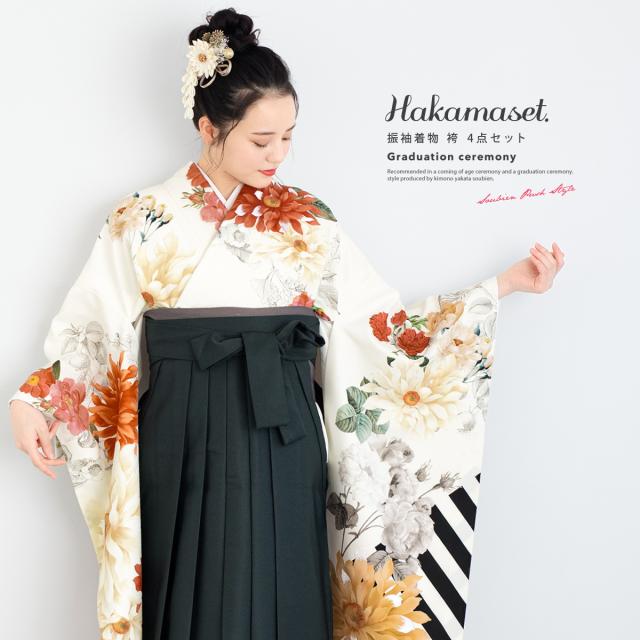 袴セット 振袖 卒業式 大学生 小学生 レディース 女の子 セット 白 緑 花 ストライプ 小夏 絵羽柄 和装 着物セット 販売 購入 送料無料