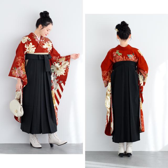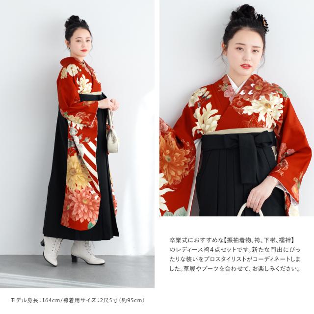 袴セット 振袖 卒業式 大学生 小学生 レディース 女の子 セット 赤 黒 花 バラ ストライプ 小夏 絵羽柄 和装 着物セット 販売 購入 送料無料