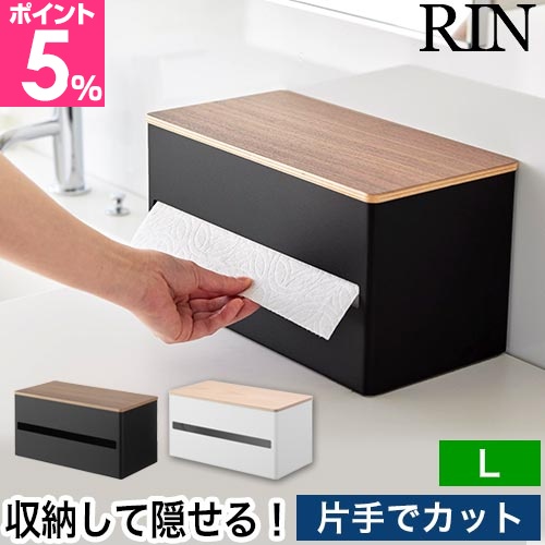 山崎実業 片手でカット隠せるキッチンペーパーホルダー リン L 4903208016445 1644 1645 収納ケース 片手で切れる 卓上 木製 キッチン 置き型 インテリア おしゃれ モダン 片手 横置き 四角 洗面所 RIN キッチン収納 yamazaki