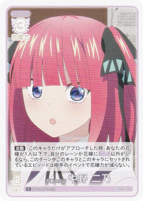 五等分の花嫁カードゲーム GYC-BP1-013 不意の反応 中野 二乃 (C コモン) ブースターパック vol.1