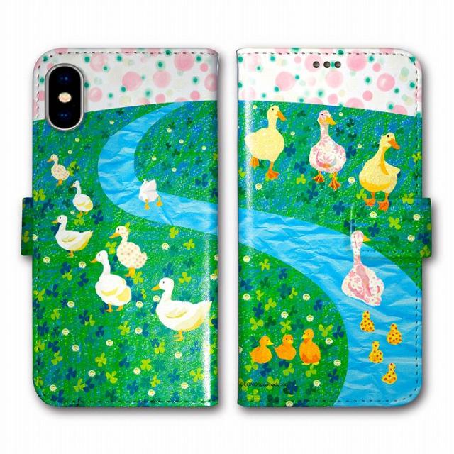 AQUOS wish3 SH-53D/A302SH ケース 手帳型 スマホケース アクオス sense9 SH-53E/SHG14 SH-51C/A204SH SHG08 SHG07 スマホカバー シンプル 全機種対応 COMOデザイン アニマル柄 アヒルの丘 花畑 川 ほのぼの コラージュ