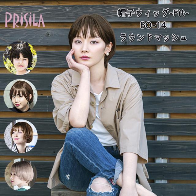 マッシュボブ 帽子ウィッグ fit フィット プリシラ BO-14 小さいサイズ 頭囲の小さい方 耐熱 ウイッグ かつら PRISILA | 医療用 和装 コスプレ 黒髪 自然 おしゃれ かわいい 可愛い 小顔 簡単