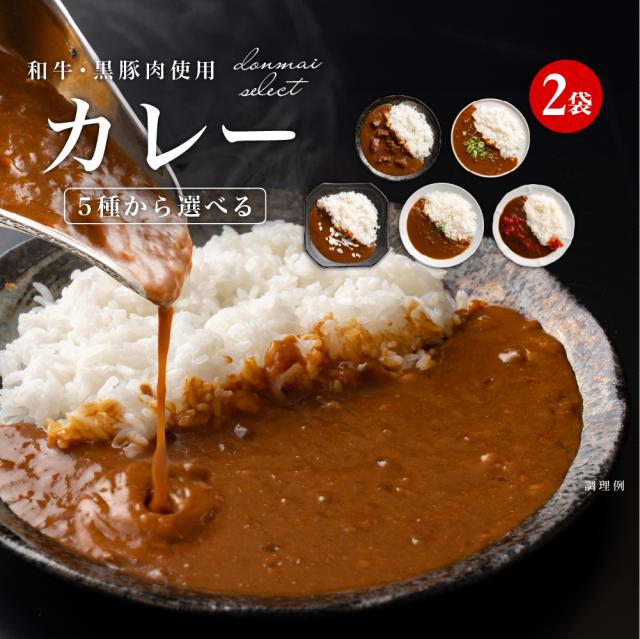 送料無料 贅沢カレー2食(160g×2) 5種から選べる レトルトカレー 和牛 黒豚 神戸牛 宮崎牛 石垣島和牛 松坂牛 ポイント消化 お試し ポイント消費 食品 グルメ 非常食 保存食 防災食 長期保存 仕送り 非常用 防災 備蓄 簡単 便利 どんまい