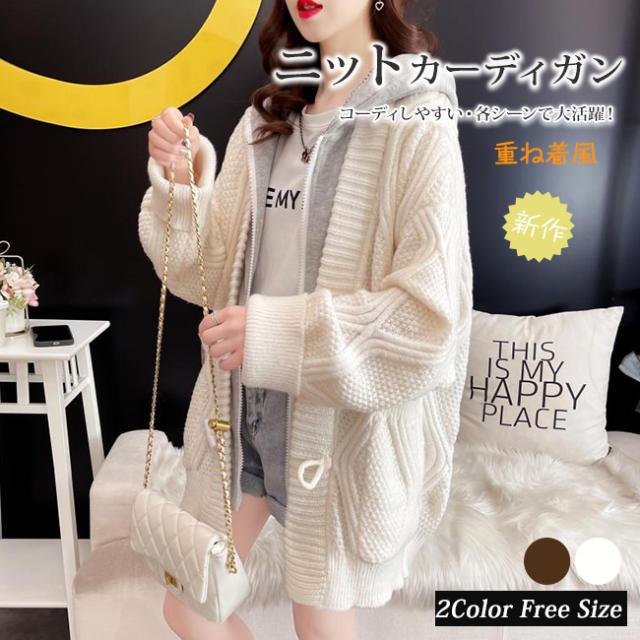 新作 カーディガン レディース 重ね着風 カーディガン 切り替え ニット セーター コート 羽織り アウター 厚手 カットソー ニットカーデ 暖かい 出かけ