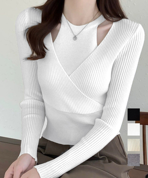 ニットトップス 長袖 レイヤード風 秋冬