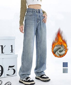 レディース ハイウエスト セミワイドパンツ 風 ウォッシュ加工デニム あったか ジーパン 美脚脚長カジュアルボトムスロングパンツ 秋冬 細見えジーンズ防寒 裏フリースデニム冬