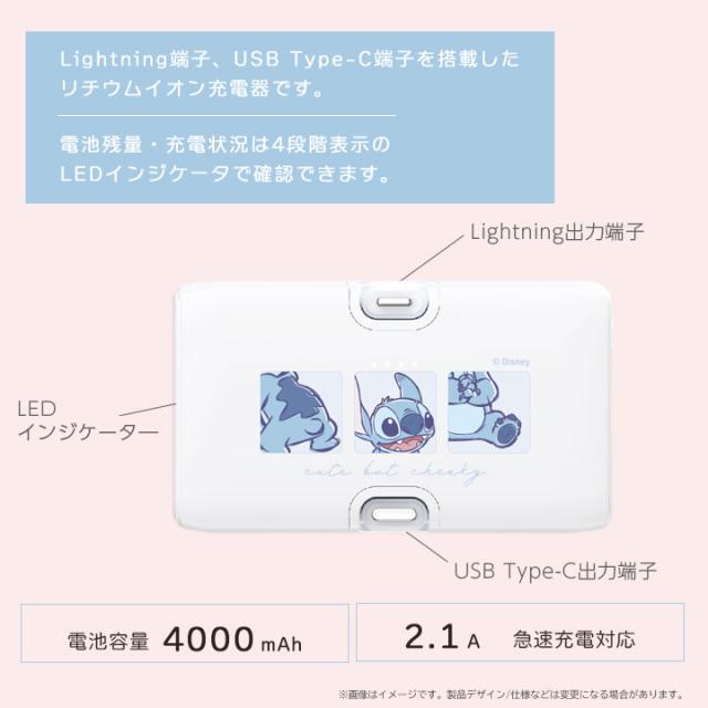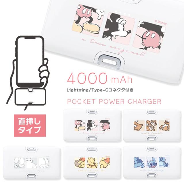 ディズニーキャラクター Lightning Type-Cコネクタ付き リチウムイオン充電器 4000mAh モバイルバッテリー 2台同時充電 Disney ミッキーマウス チップ&デール スティッチ ベイマックス くまのプーさん メール便送料無料