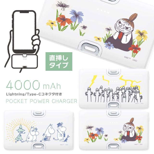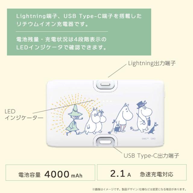 ムーミン Lightning Type-Cコネクタ付き リチウムイオン充電器 4000mAh モバイルバッテリー 2台同時充電 MOOMIN ムーミンファミリー リトルミイ ニョロニョロ メール便送料無料