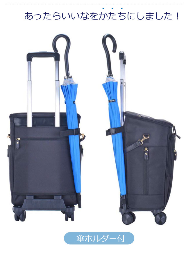 - 9日午前中荷物受けとり、こんなに早く ありがとうございました。 現在、スワニーを使かってます。 今回購入した商品は満た目は凄く良かったですが写真では裏がわはわかりませんでした。ストッパー押さえる所1ヶ所しかなく、ゴムをキャリー台に通すのは、 驚きました。 私の所はス—パ—3件ありますが3分〜5分の近くなので私は大丈夫ですが重い荷物は危ないと思います。 遅くなりすみません。 取りはずしが出来る様になってたんですね、今は利用させていただいてます。