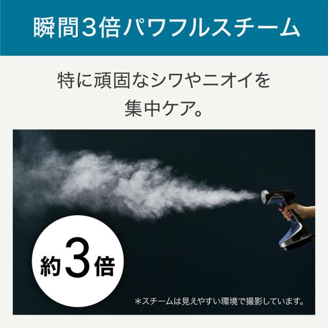 ・瞬間3倍パワフルスチームで、特に頑固なシワやニオイを集中ケア。ターボボタン長押しで約 3倍量のスチームが約2秒間続きます。(※ 2)。