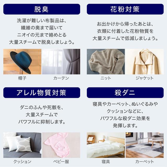 ・水と熱だけの蒸気の力で、安心安全に部屋中の布製品のお手入れができます。