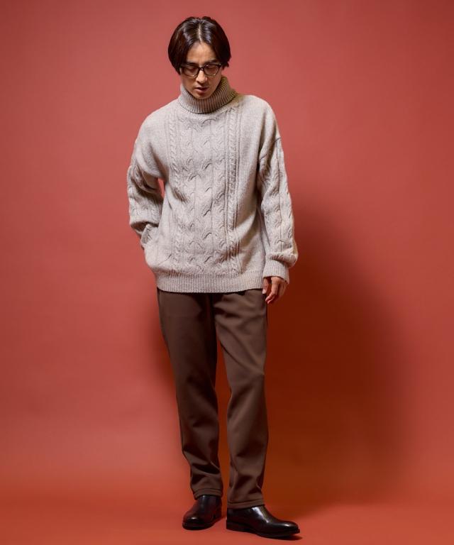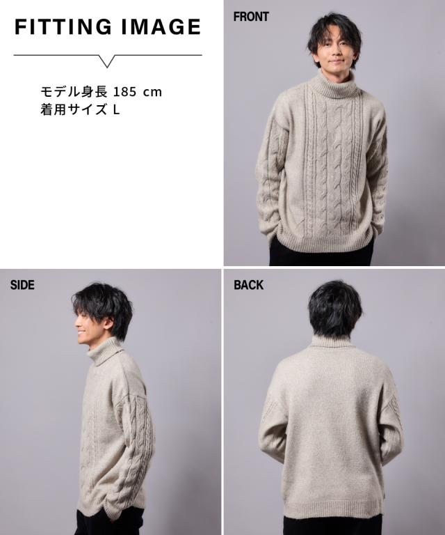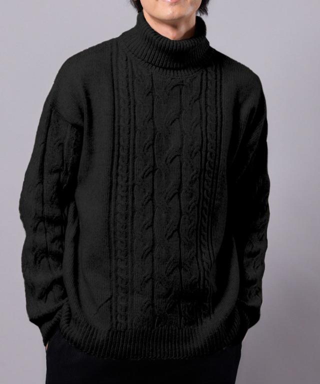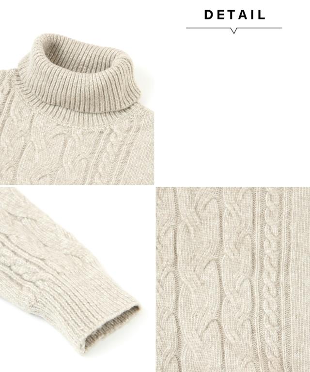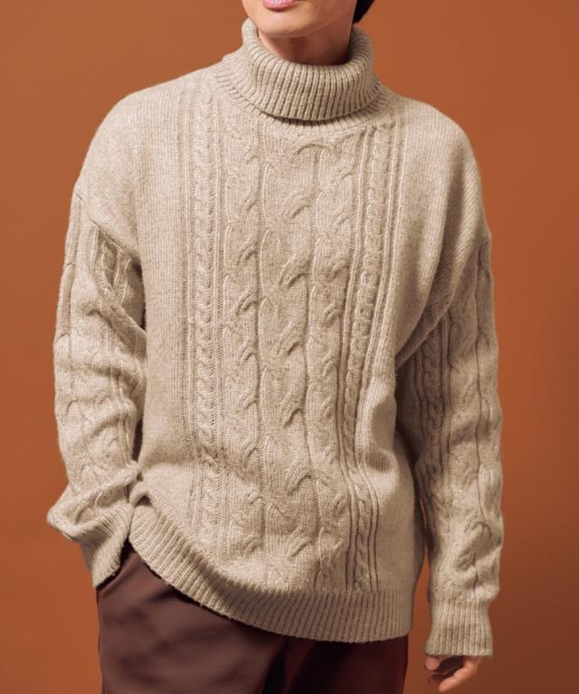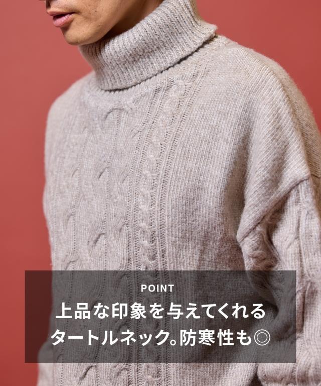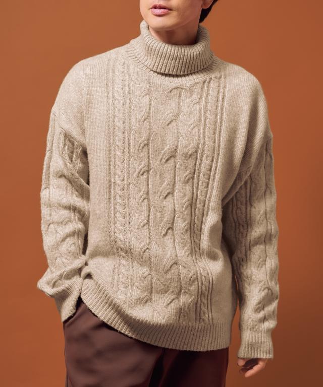 洗えるケーブル編タートルネックセーター