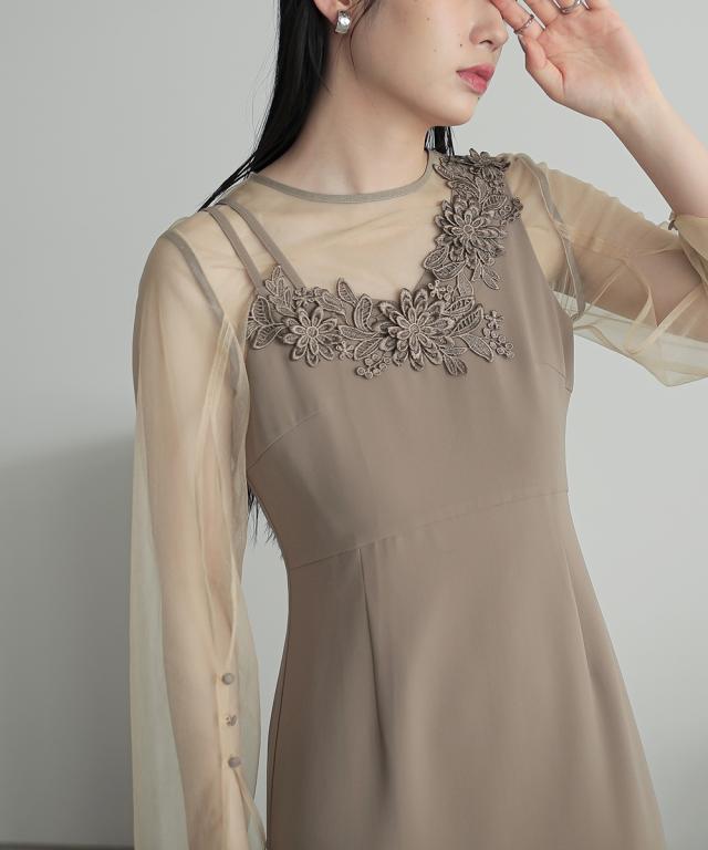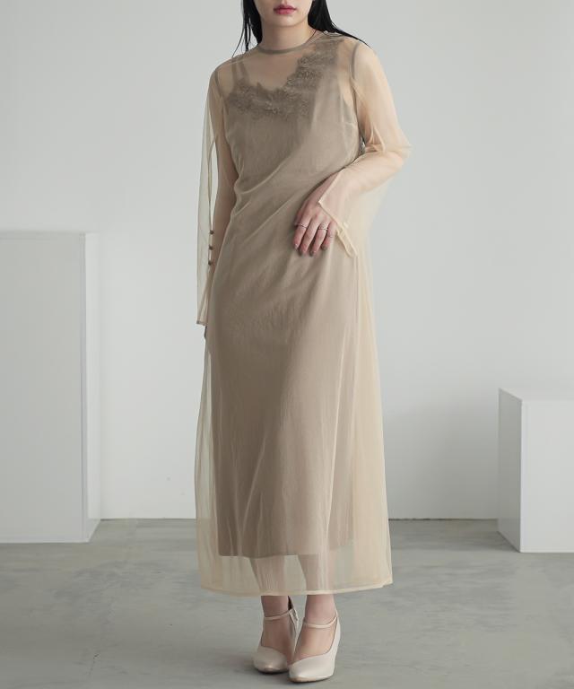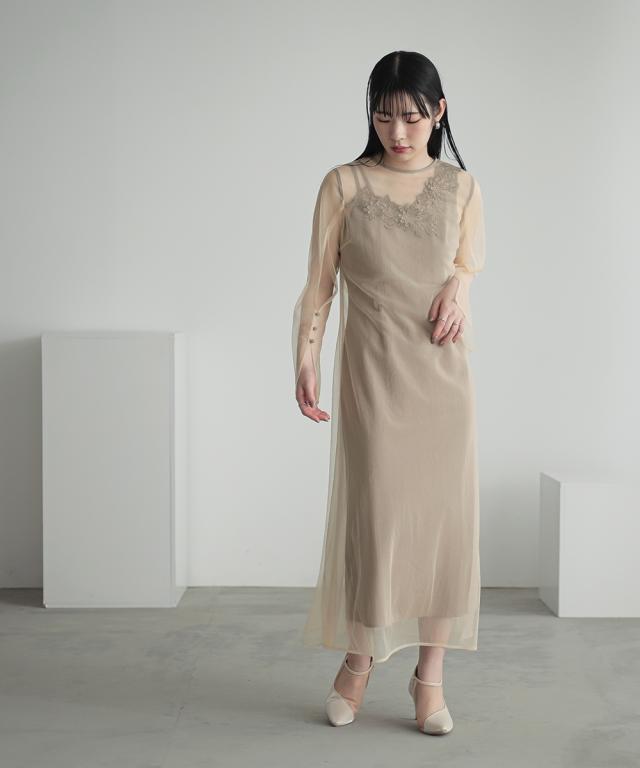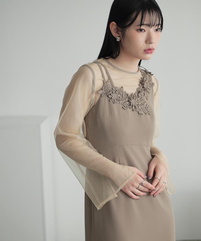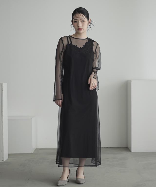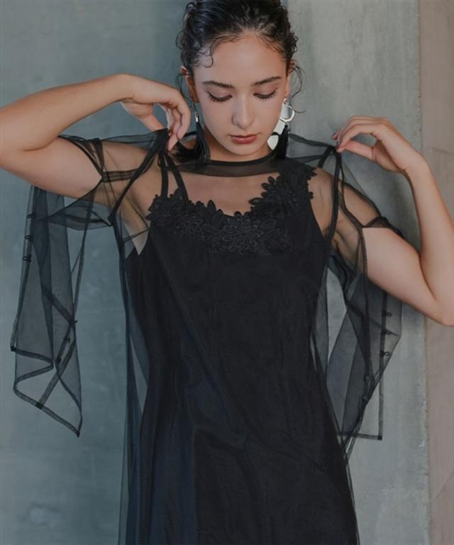 品質=[オーバーワンピース]ナイロン100%(チュール)[キャミソールワンピース]ポリエステル100%(ジョーゼット)
