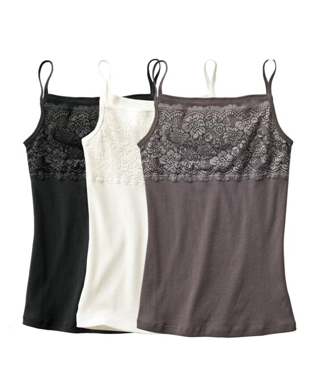 綿100%胸元レースキャミソール3枚組