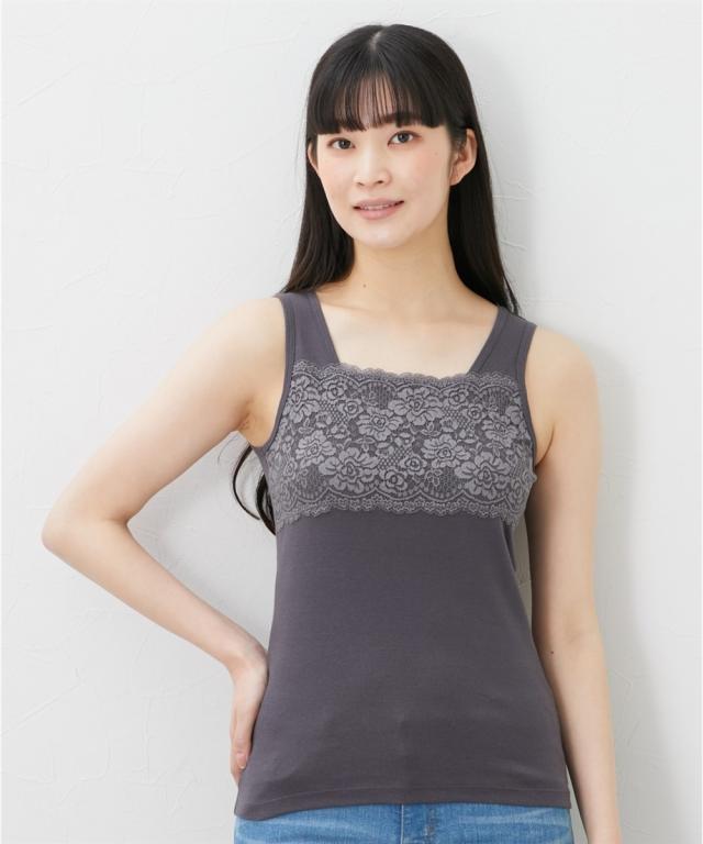 品質=身生地:綿100%(フライス) 胸元レース部除く レース柄が多少異なる場合があります。 原産国:中国製 洗濯表示:洗濯機OK