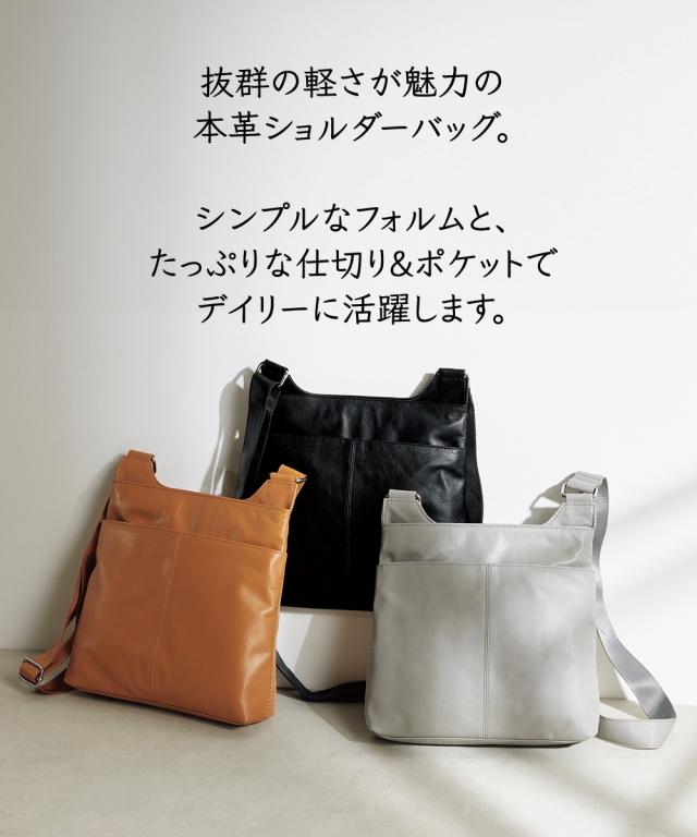 【シニアファッション】山羊革軽量ショルダーバッグ