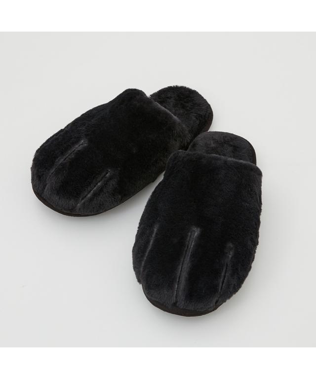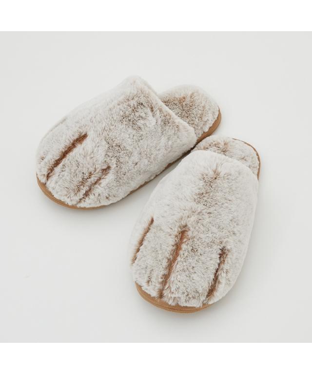 素足で履いて是非その気持ち良いモフモフ感を実感ください。ボリューム感たっぷりのフェイクファータッチ。家に帰るのが楽