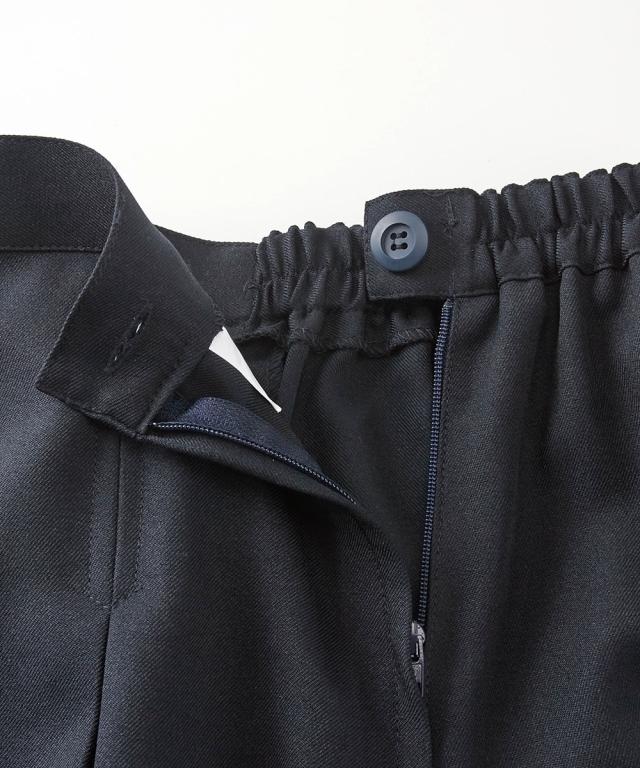 品質=本体:ポリエステル100%(織物) 脇ファスナー開き ウエスト後ゴム入 ポケット:前1 原産国:中国製 洗濯表示:洗濯機洗い可