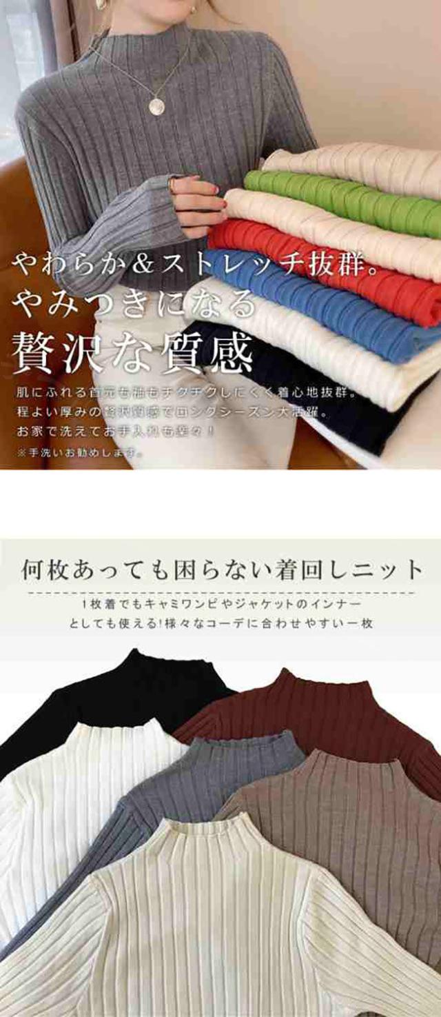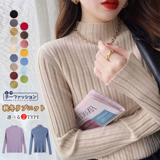 <1点あたり1,250円!2点同時購入&クーポン利用で> リブニット ニットトップス ニットセーター 長袖 冬新作 新作 レディース ハイネックニット 防寒 薄手 無地 重ね着 きれいめ オフィス カジュアル 無地 着回し 着痩せ プルオーバー インナー 秋冬