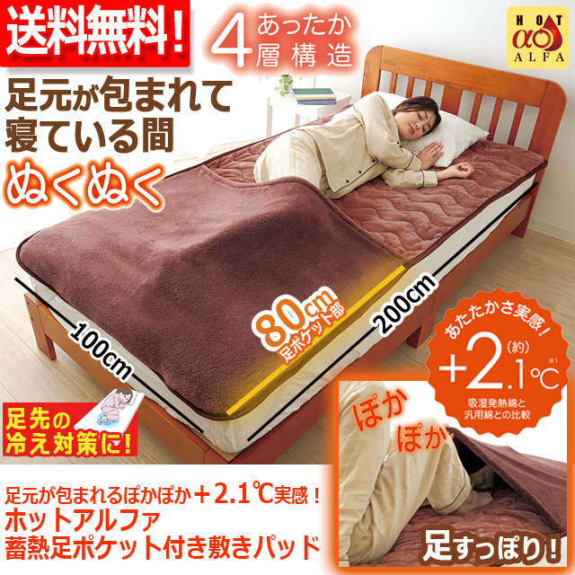 足元 ぽかぽか +2.1℃ 敷パッド 冷え性 足先 毛布 フランネル 保温 冬 (ホットアルファ蓄熱足ポケット付き敷きパッド) 吸湿発熱