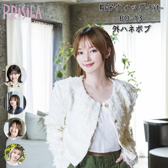 外ハネボブ 帽子ウィッグ fit フィット プリシラ BO-13 小さいサイズ 頭囲の小さい方 耐熱 ウイッグ かつら PRISILA | 医療用 和装 コスプレ 黒髪 自然 おしゃれ かわいい 可愛い 小顔 簡単 お手軽