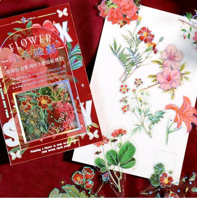 金箔押し クリアシール 30枚 マットな質感 薔薇 ローズ 花柄 クリアシール PET 耐水 シール コラージュ素材 おしゃれ ローズ 葉っぱ フラワー イラストシール 海外ステッカー 防水シール 箔押し シール デコレーション ハンドメイド ラブレター 手帳 日記 DIY