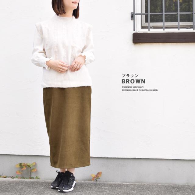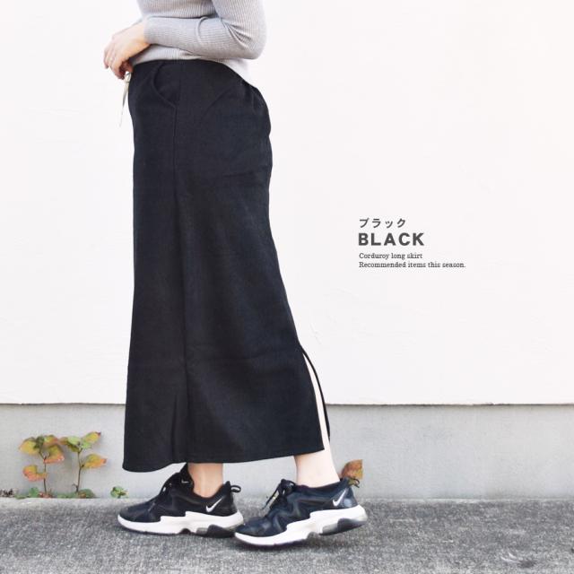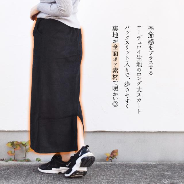 スカート コーデュロイ ロング丈 裏起毛 裏ボア 暖か レディース ボトムス バックスリット 太畝 ロング マキシ丈 マキシスカート ひざ下 ウエストゴム タイトスカート Iライン カジュアル シンプル 無地 体型カバー 送料無料 (bc0169)