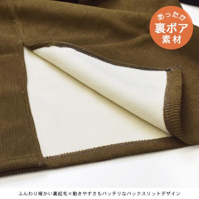 【コーデュロイ スカート ロング丈 裏起毛 裏ボア レディース ボトムス バックスリット スリット 太畝 ロングスカート マキシ丈 マキシスカート ひざ下 ウエストゴム タイトスカート Iライン カジュアル シンプル 無地 体型カバー】
