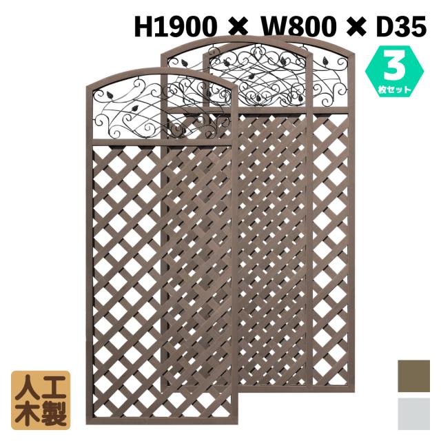 アイウッド 人工木製 アイアンデザインラティス 3枚セット 高さ190幅80cm ダークブラウン 鉄装飾付き 樹脂製 腐らない 色あせない 目隠しフェンス 日除け 外構資材