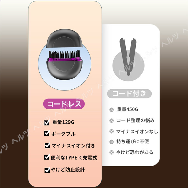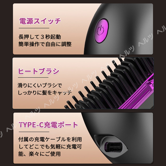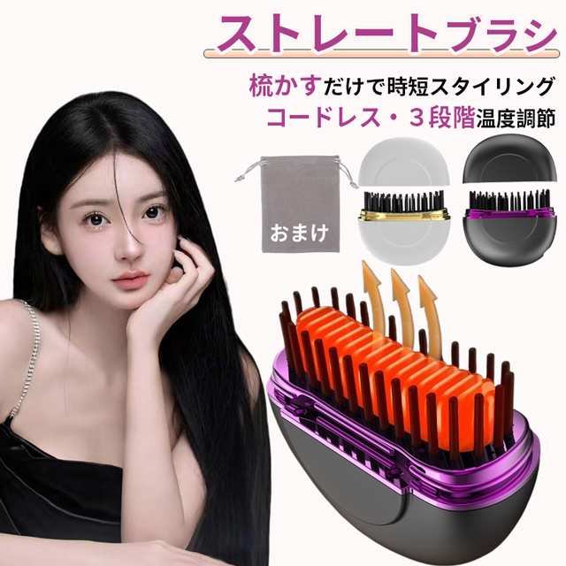 「クーポン配布中」「即納」ミニヘアアイロン ヒートブラシ コードレス ストレートブラシ ヘアアイロン 携帯 ブラシアイロン ストレートアイロン ヒートブラシ スリム 軽量 3段階温度調整 急速加熱 火傷防止コンパクト 誕生 バレンタイン 2025 プレゼント