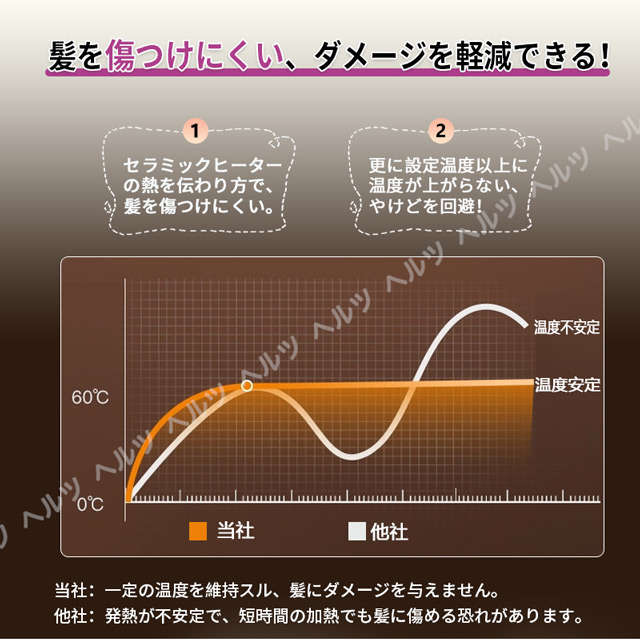 ※ご使用の際には、同じ個所に長時間当て続けないようにしてください。髪を痛める原因になります。