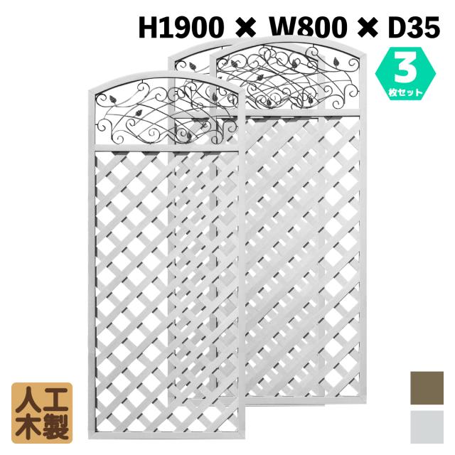 アイウッド 人工木製 アイアンデザインラティス 3枚セット 高さ190幅80cm ホワイト 鉄装飾付き 樹脂製 腐らない 色あせない 目隠しフェンス 日除け 外構資材