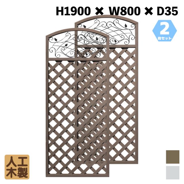 アイウッド 人工木製 アイアンデザインラティス 2枚セット ダークブラウン 鉄装飾付き 樹脂製 腐らない 色あせない 目隠しフェンス 日除け 外構資材