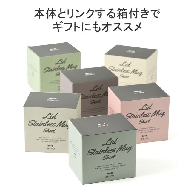BRUNO/ブルーノ/蓋つきステンレスマグ short/マグカップ/マグ/カップ/ステンレスマグカップ/ステンレスカップ/ステンレス/コップ/蓋/蓋付/蓋付き/フタ/フタ付/フタ付き/スライド/スライド式/こぼれない/保温/保冷/真空/真空二重/真空二重構造/320ml/0.32L/ショートサイズ/ショート/サイズ/コンパクト/コンパクトサイズ/軽量/軽い/シンプル/カジュアル/無地/ロゴ/ワンポイント/カラー/グレー/ピンクベージュ/ピンク/緑/グリーン/グレージュ/ベージュ/ブルーグレー/ブルー/青/水色/アイボリー/かわいい/可愛い/大人可愛い/シック/おしゃれ/オシャレ/お洒落/通勤/会社/オフィス/デスク/デスクワーク/リモートワーク/アウトドア/キャンプ/箱/化粧箱/ギフト/プレゼント/贈り物/お祝い/ブランド/大人/男性/女性/男女兼用/メンズ/レディース/ユニセックス