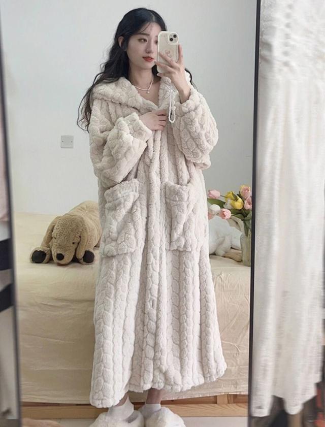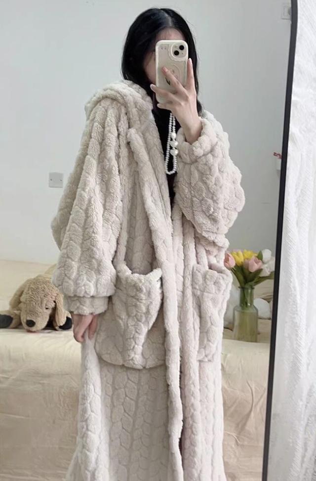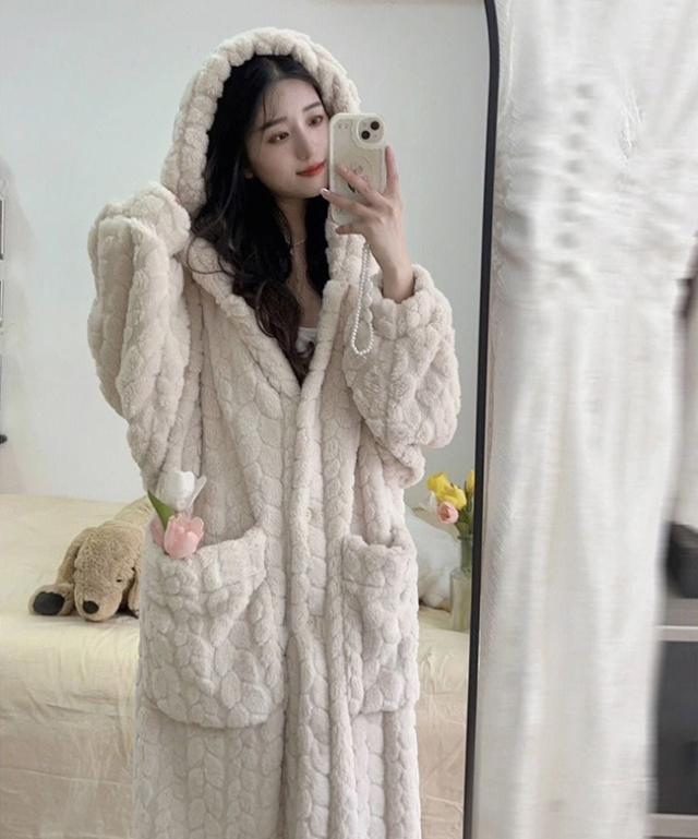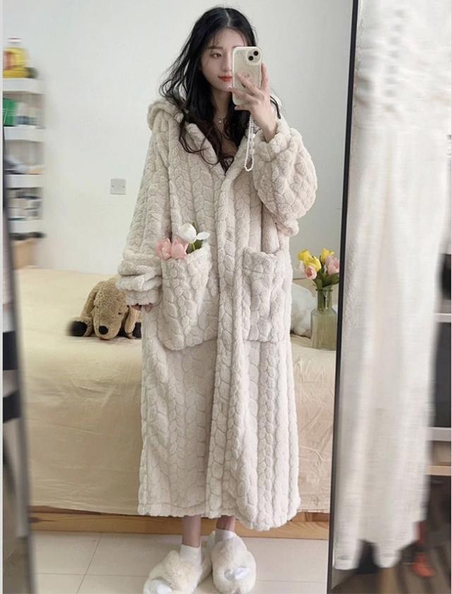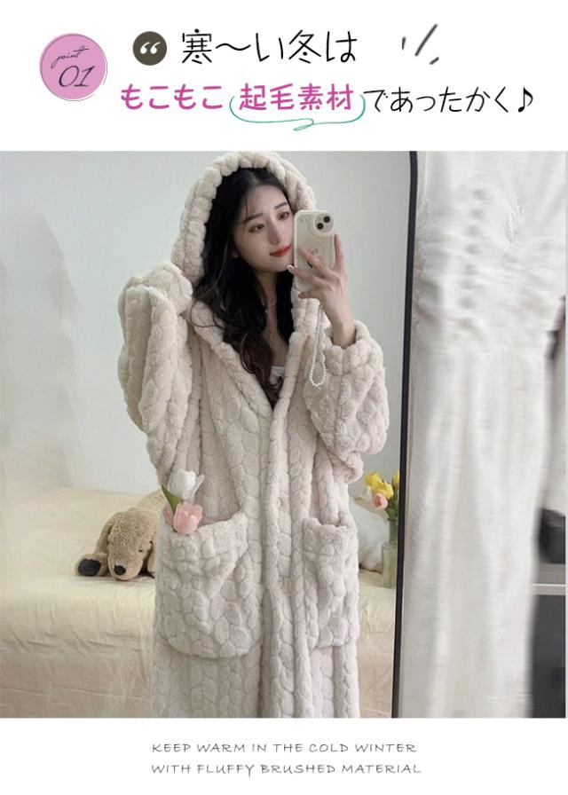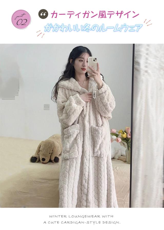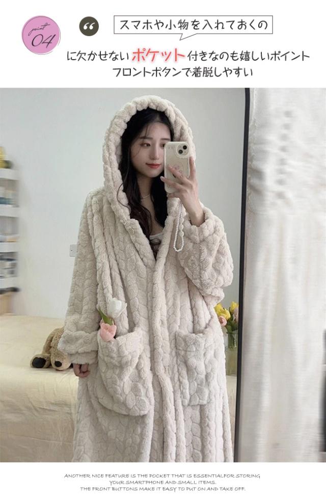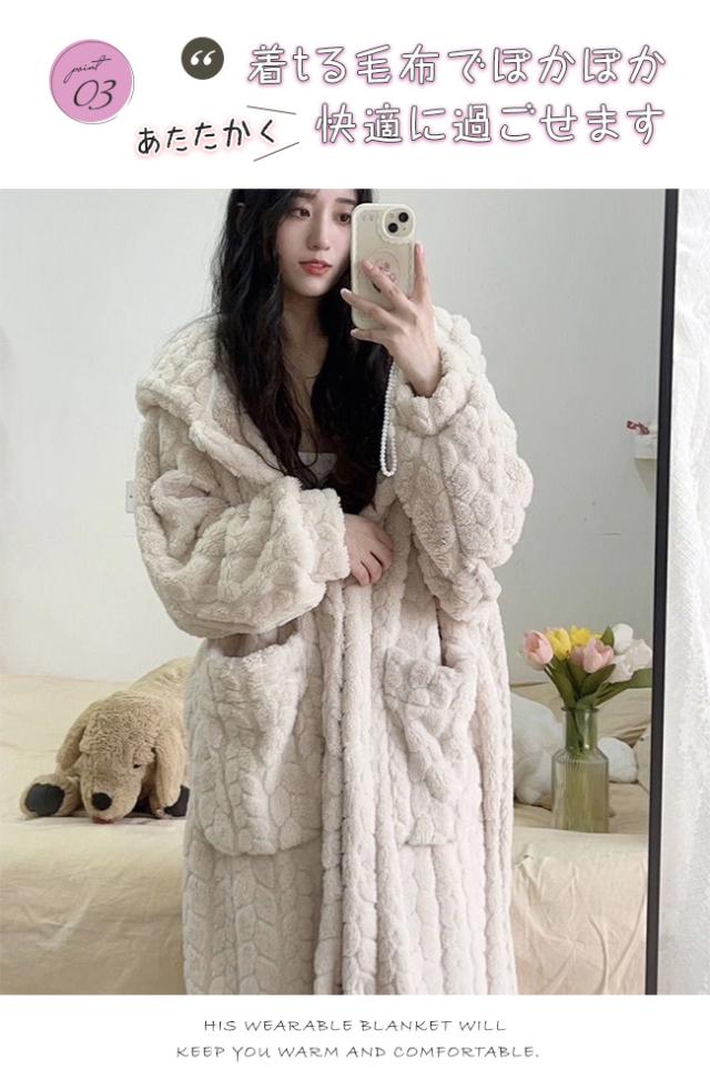 新作 ルームウェア レディース 着る毛布 ガウン ネグリジェ もこもこ パジャマ フード付き 長袖 ロング 部屋着 前開き 暖かい 冷え対策 防寒 保温 大きいサイズ 春秋冬