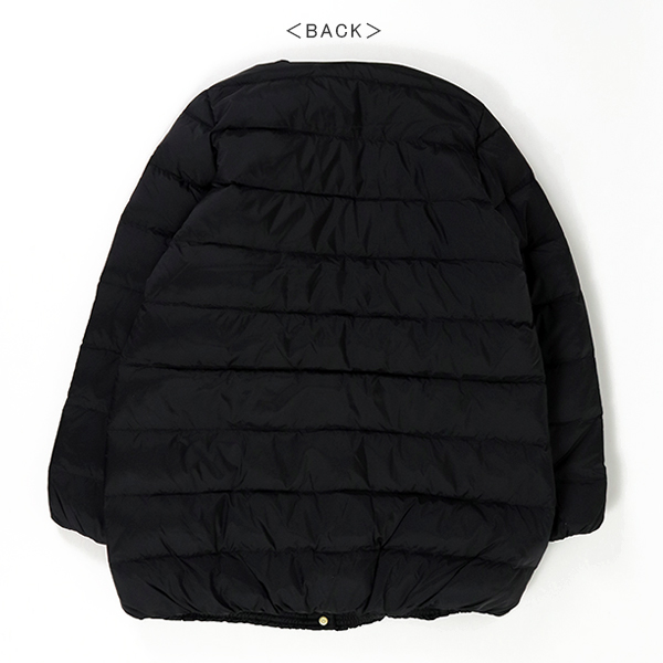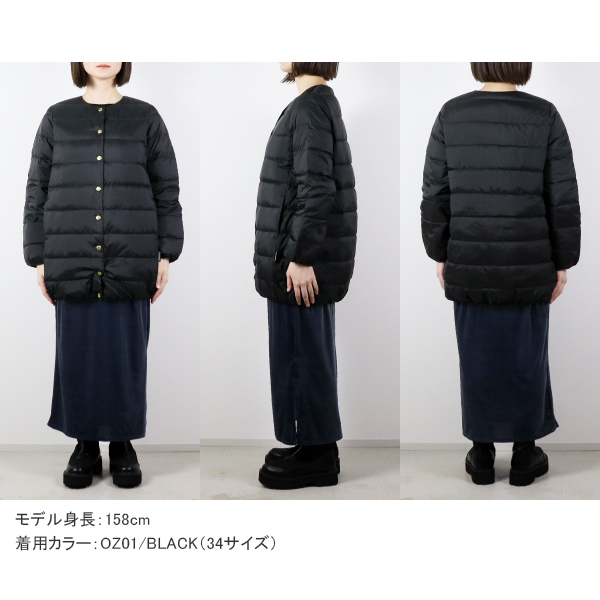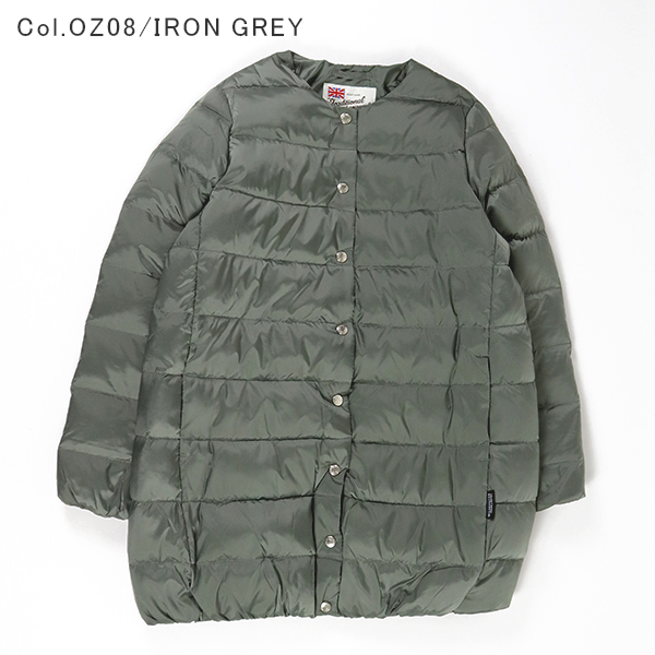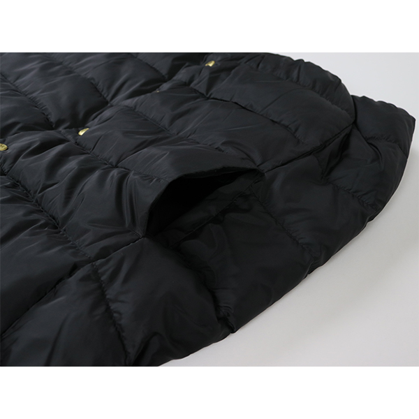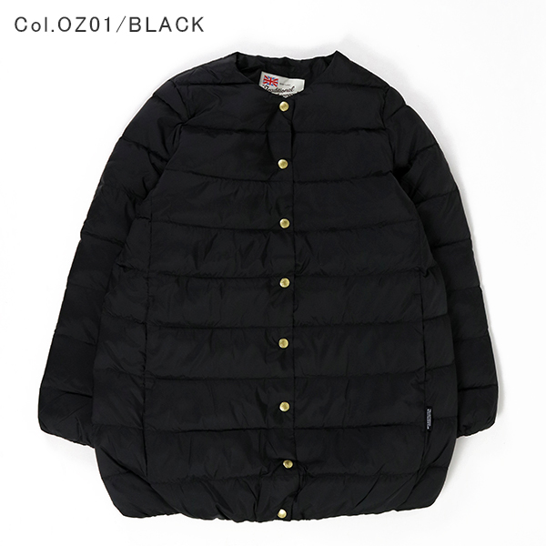 ブランドを代表するベストセラーのノーカラーキルティングジャケット、ARKLEY(アークリー)のダウンのロングモデルです。