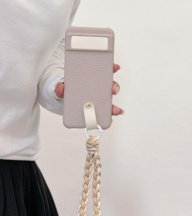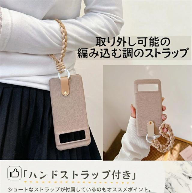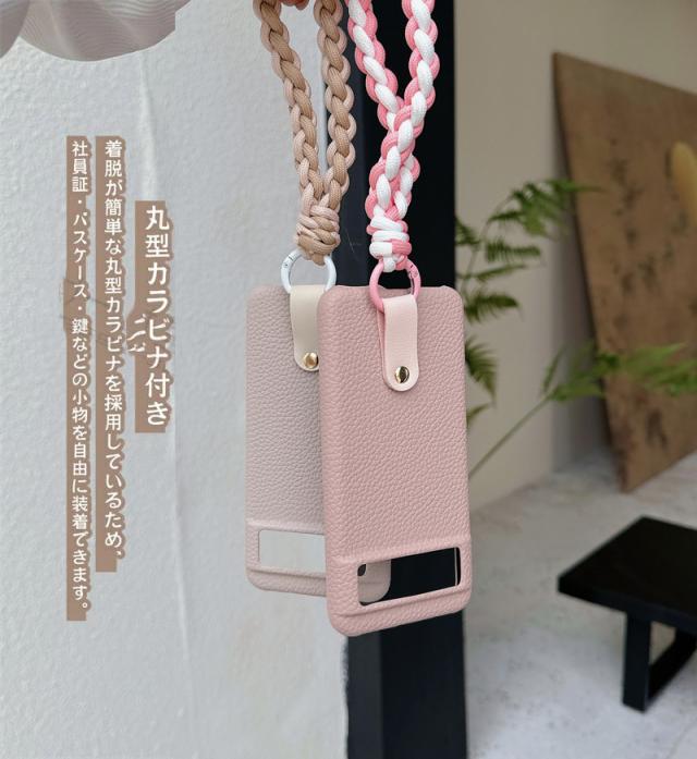 ? 編み込むタイプのストラップ付きでスマホ本体の落下を防ぎ、シーンに合わせておしゃれに使えます。