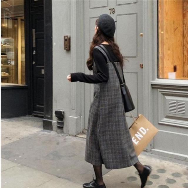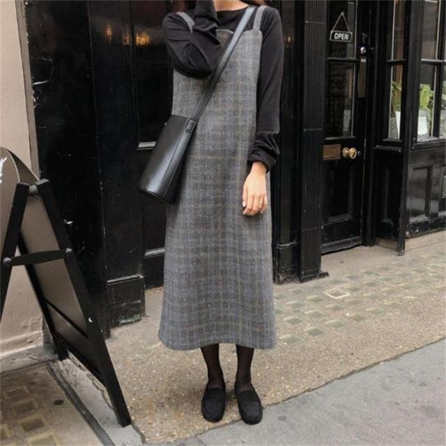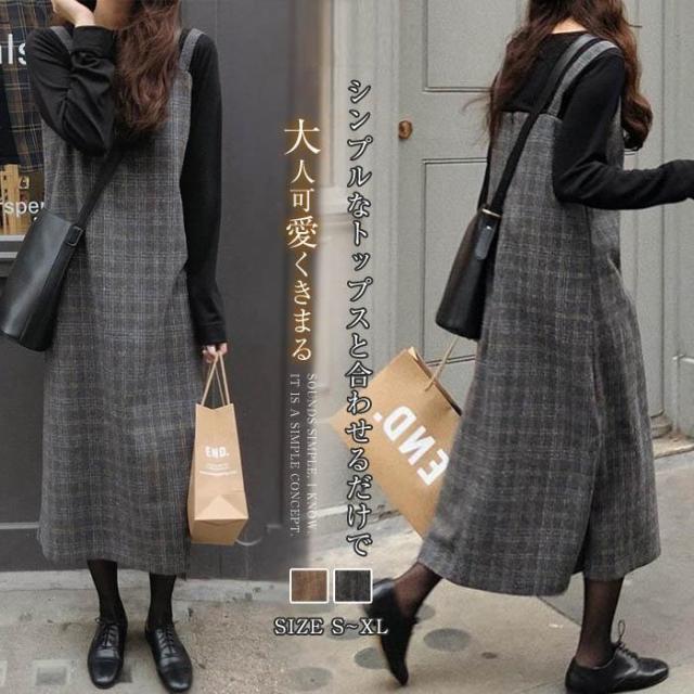 ジャンパースカート レディース ロング キャミ ワンピース きれいめ ノースリーブ チェック ノースリーブ キャミワンピ 秋冬