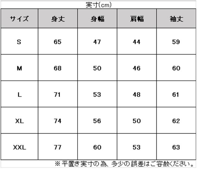 サイズ:身長 / 胸囲 / ウェスト
