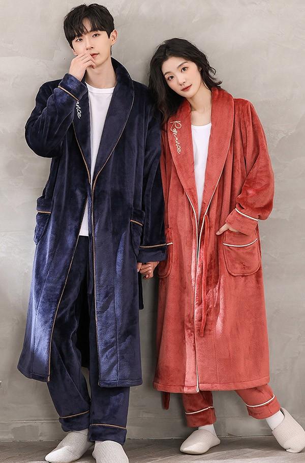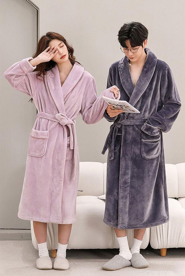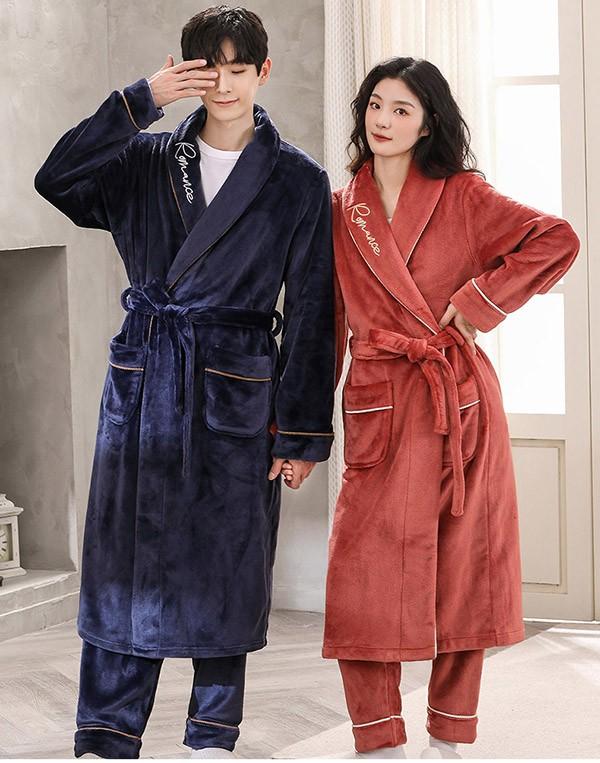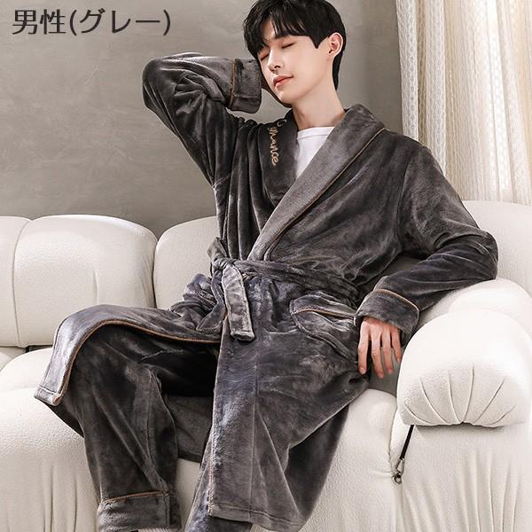 ペアパジャマ 冬 バスローブ メンズ レディース 男女兼用 着る毛布 お風呂上り ルームガウン ロング ナイトガウン 厚手 タオル地 部屋着 パジャマ カップル用 ロング あったか 帯巻き 防寒 暖かい 男性 女性 プレゼントpd346s1s1m5