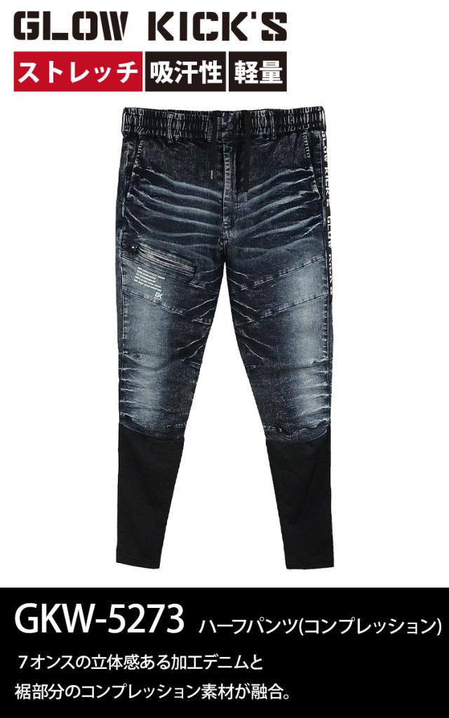 ケイゾック K-ZOC デニムパンツ(コンプレッション) GKW-5273 接触冷感 ウエストゴム ストレッチ 軽量 動きやすい ストレスフリー おしゃれ かっこいい カジュアル ジョガー 職人 現場 土木 建築 鳶 春夏 作業服 作業着 GLOW KICK’S