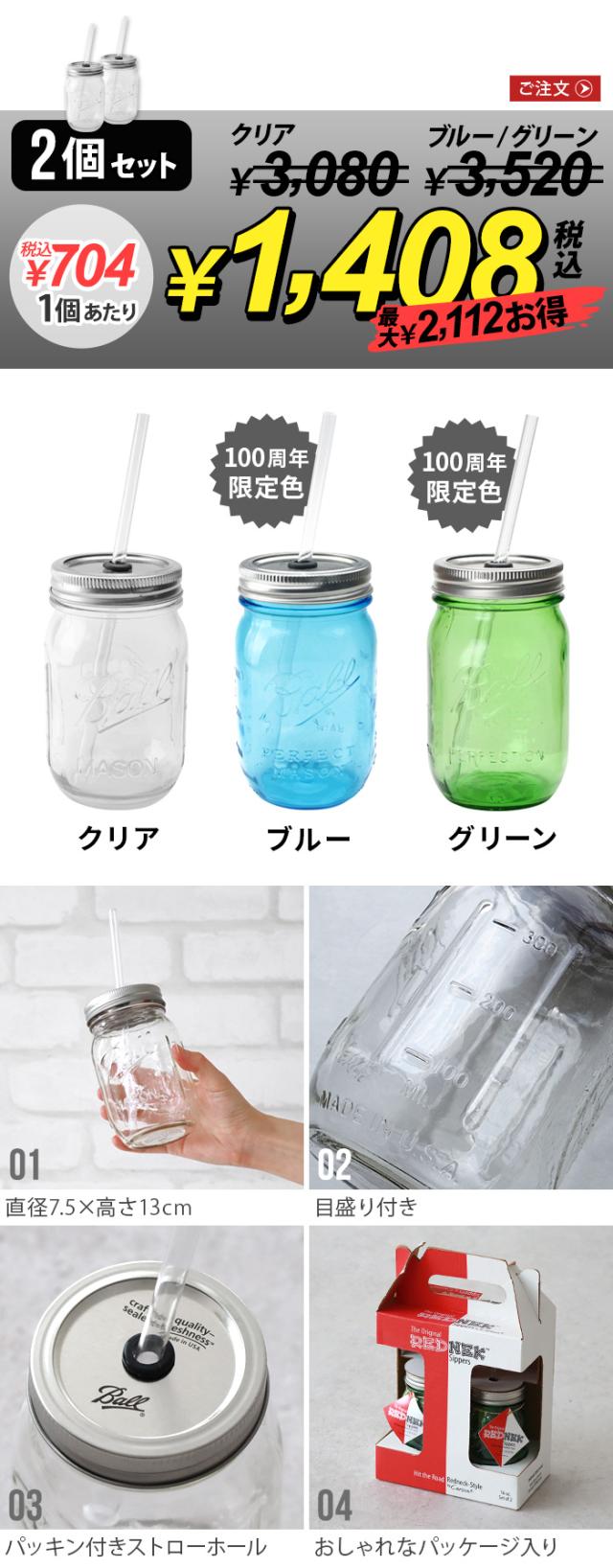 【SALE大特価】送料無料 セット割 ドリンクボトル ボトル 容器 ストロー付き メイソンジャー 正規品 Ball レッドネックシッパー 16oz [2個セット] Rednek Sippers アメリカ製 ガラス ビン おしゃれ 480ml カフェ カクテルグラス プロテイン タンブラー