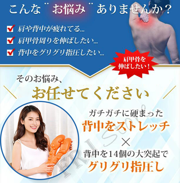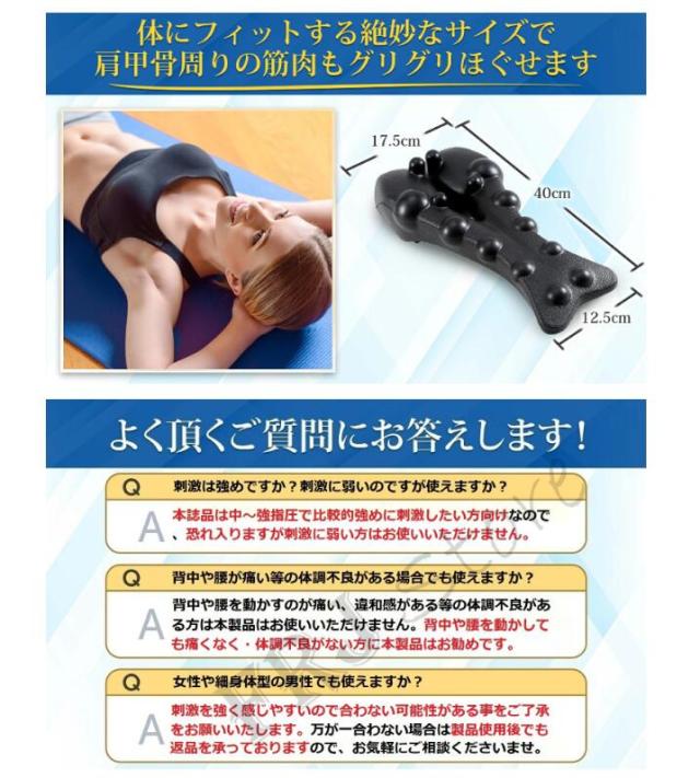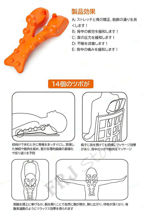 - 黒が在庫ぎれで、オレンジ購入 特に説明書もなく、見様見真似で、早速、背中にあてねてみました うまく、ツボにあたると気持ちよく、背をのばすと手軽にストレッチできるので、重宝しそうです